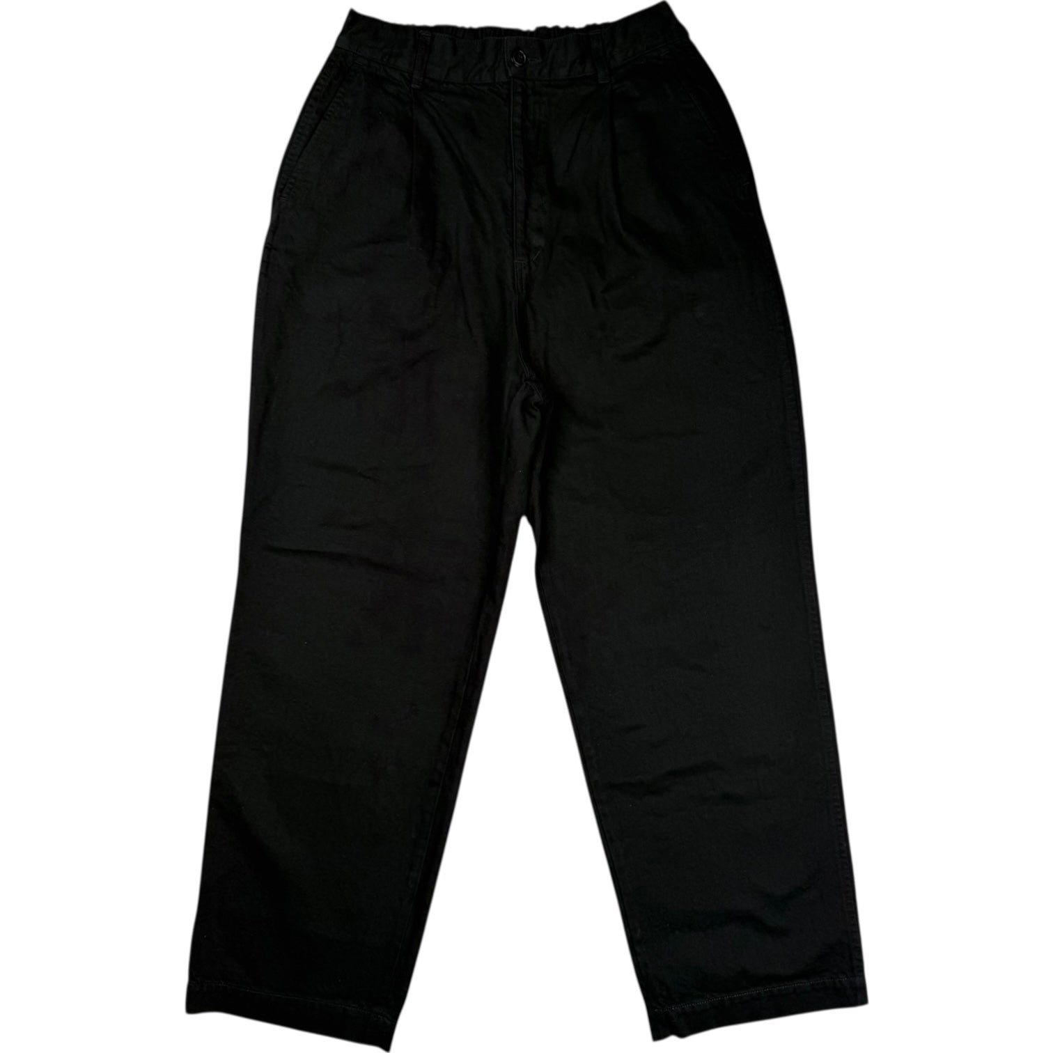 Back Satin Wide Baker Pants Black Cotton Linen
