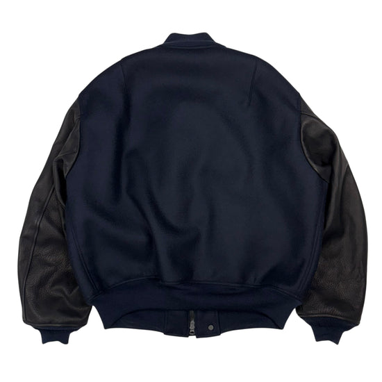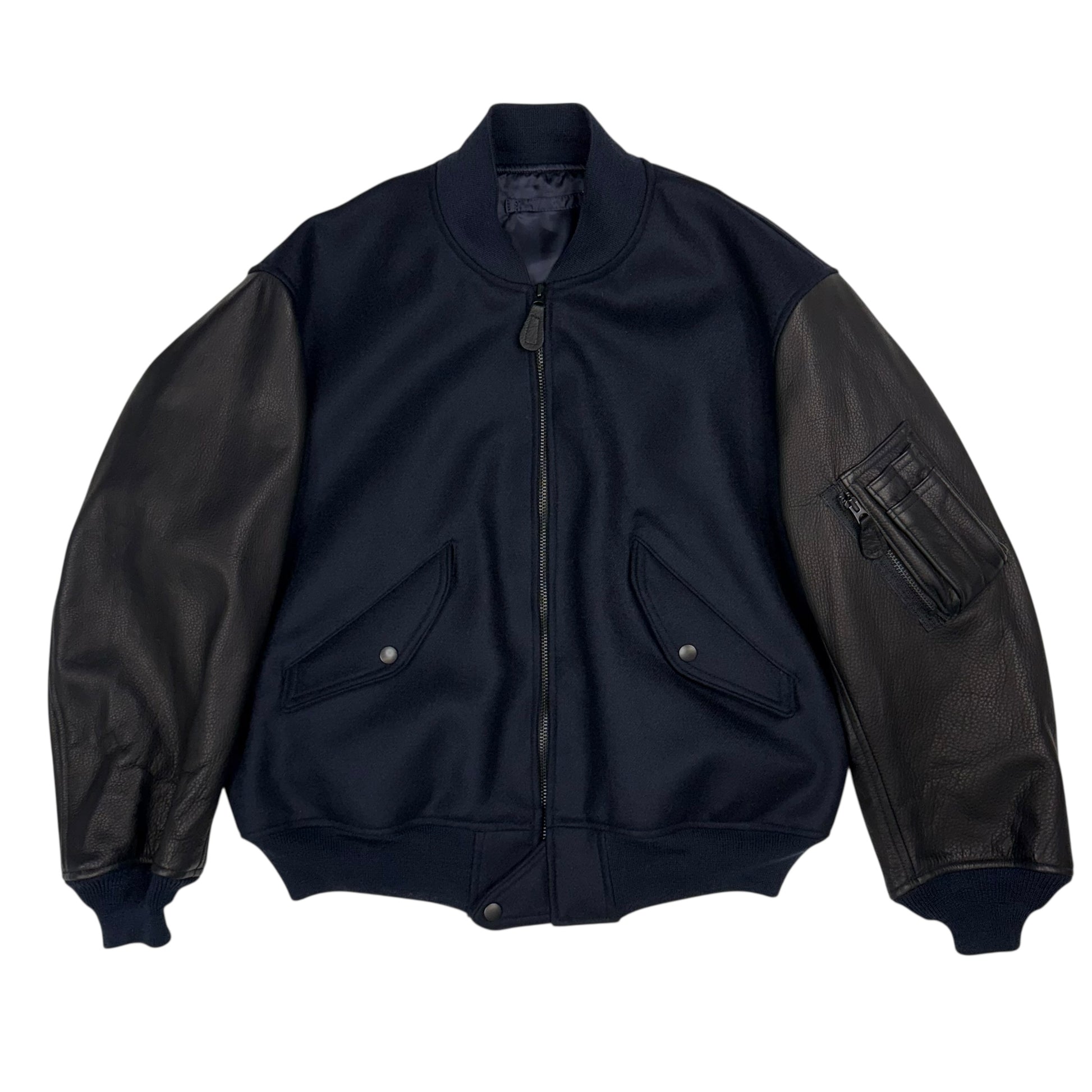 Bomber Jacket Navy Wool Deer Hide Sleeve