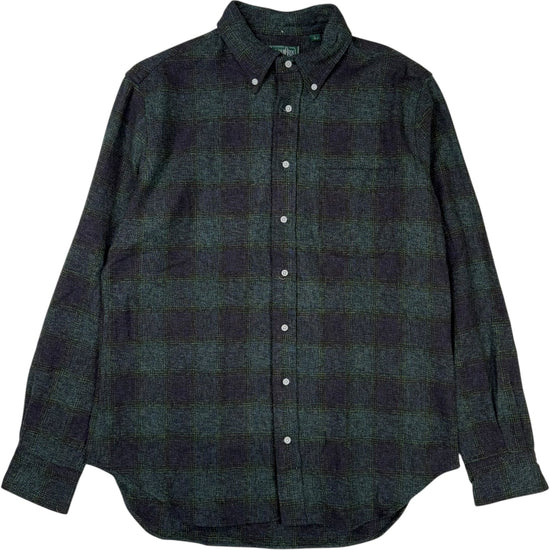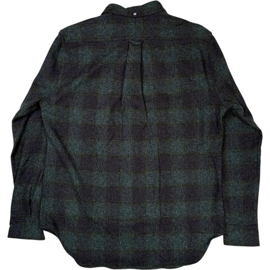 Navy Green Tweed Check Button Front Shirt