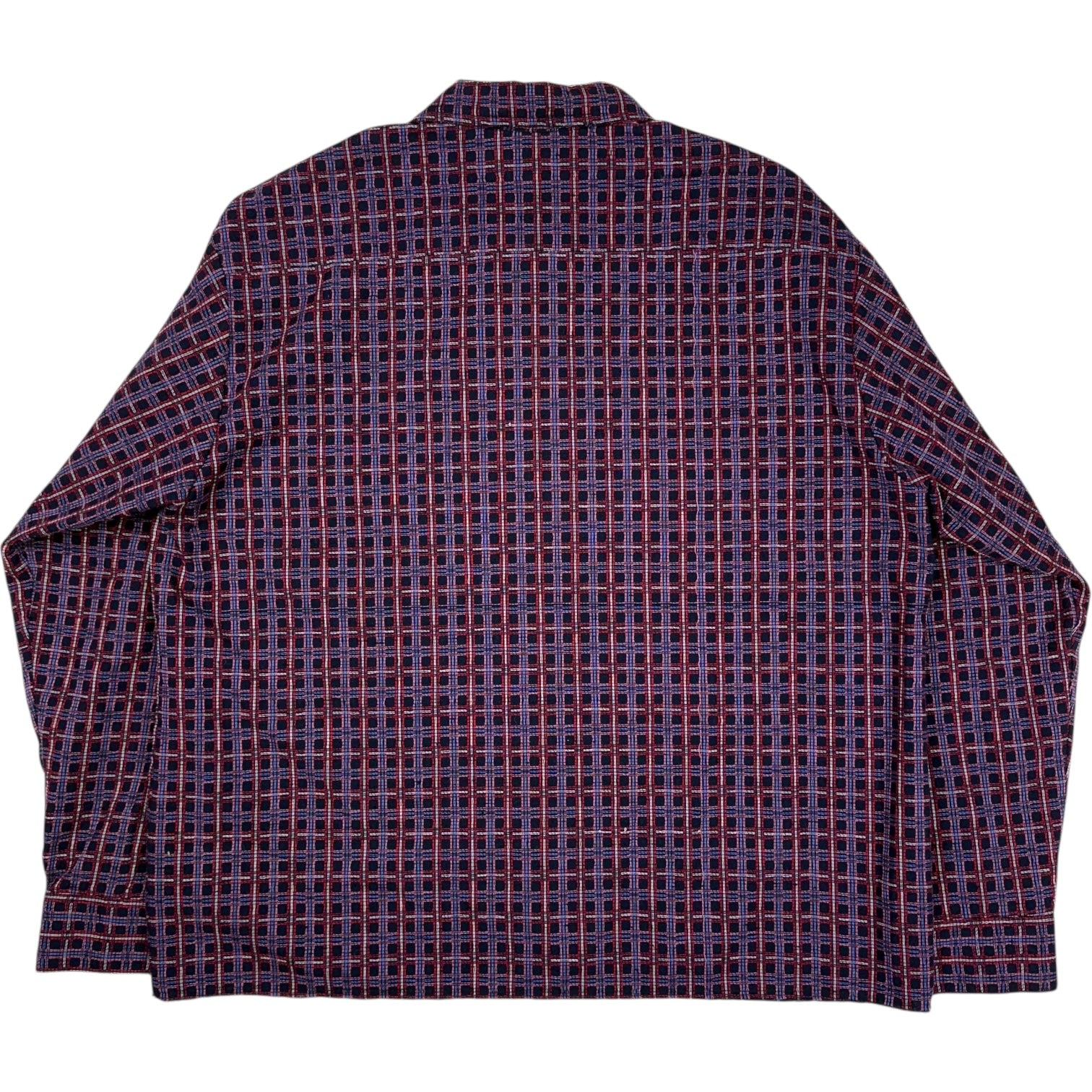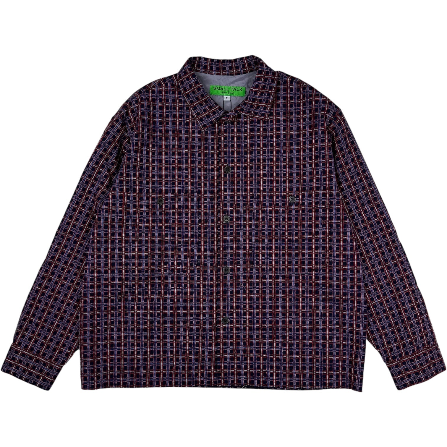 Raw Hem Overshirt Loose Weave Plaid Navy