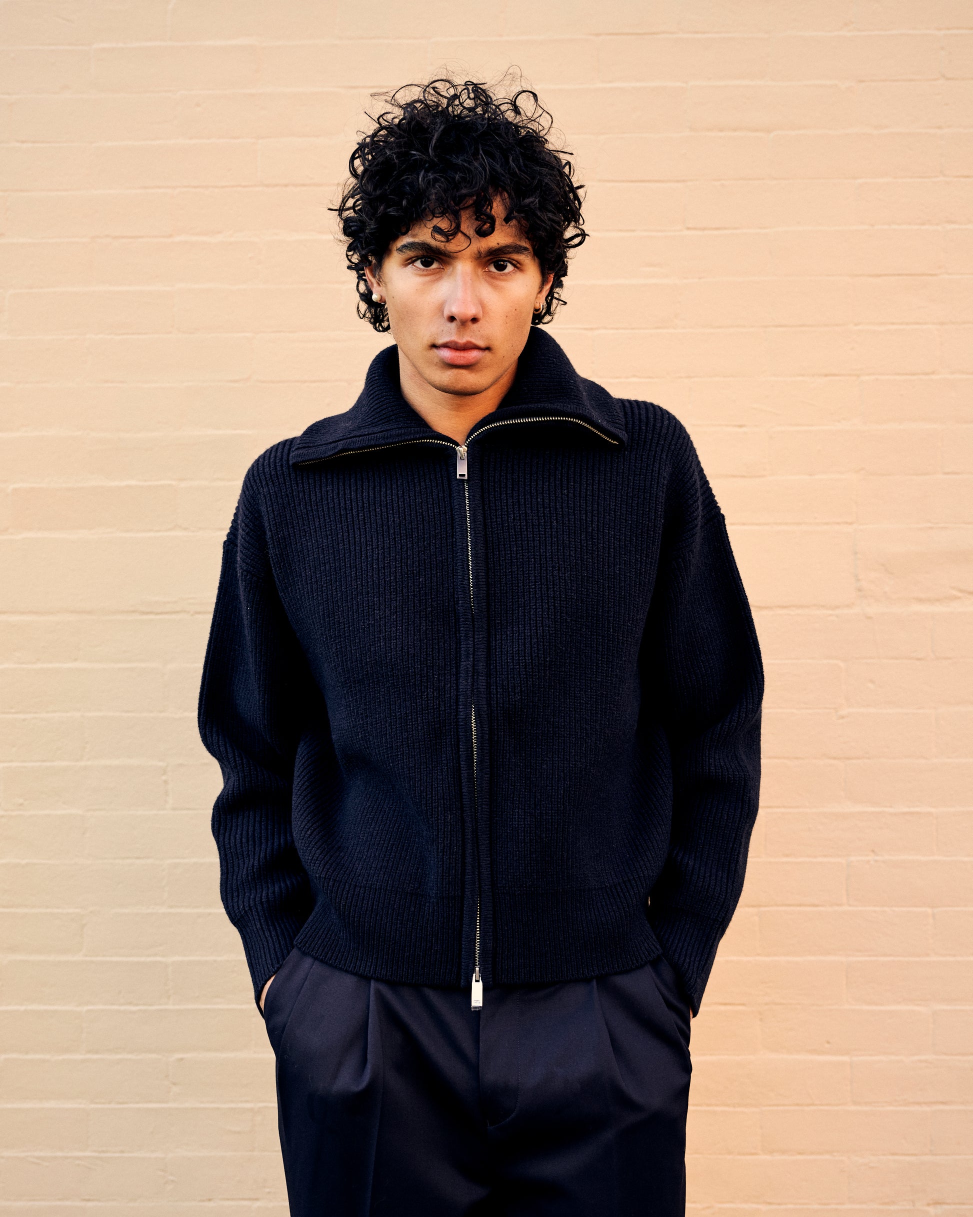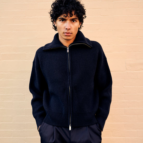 Sandos Ribbed Knit Full Zip Navy