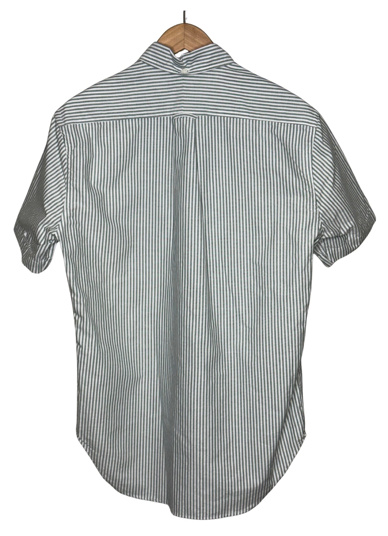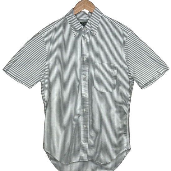 Short Sleeve Button Down Shirt Green Stripe