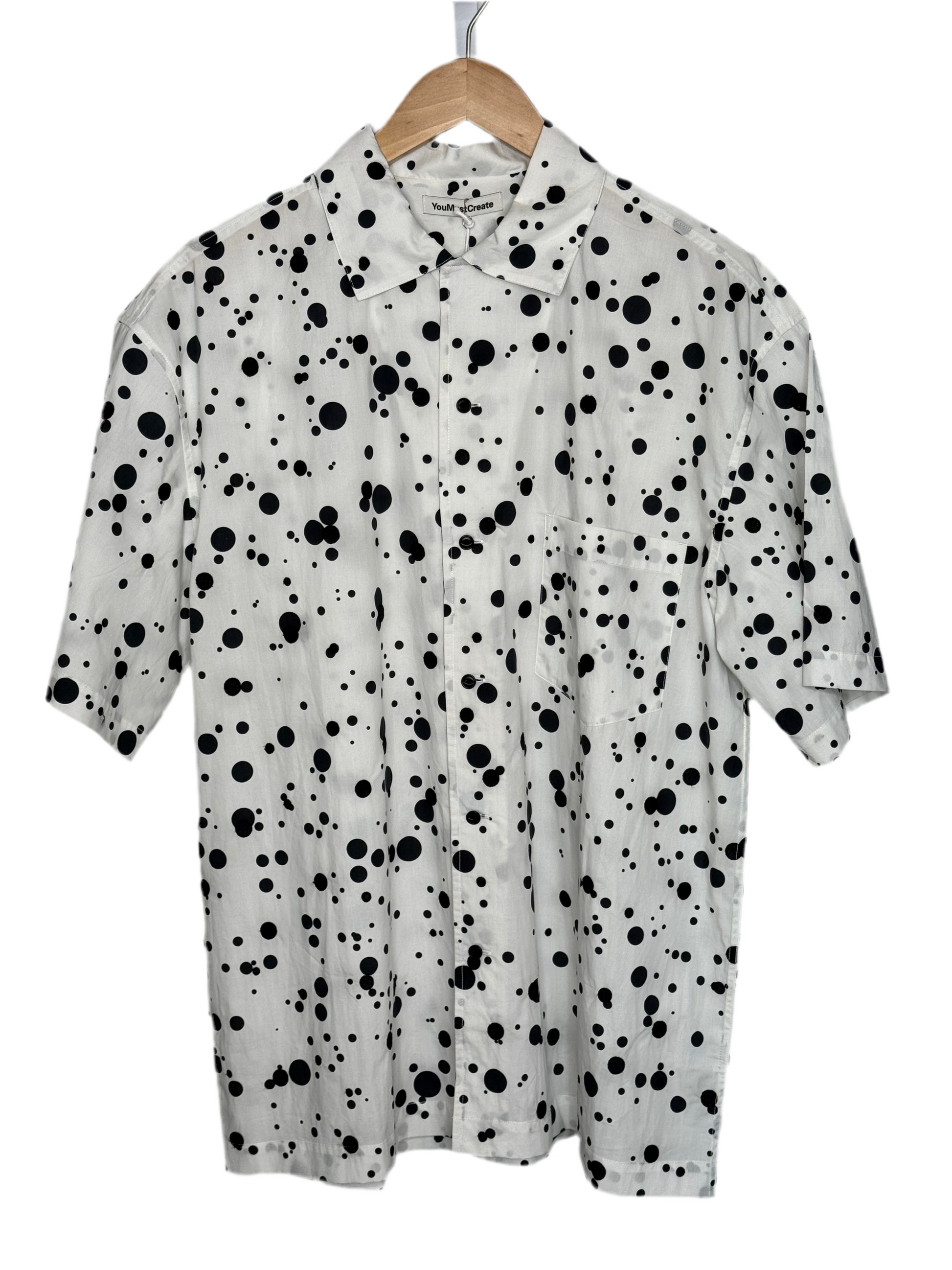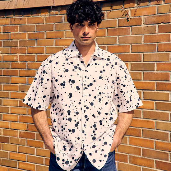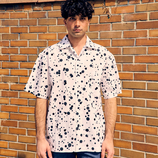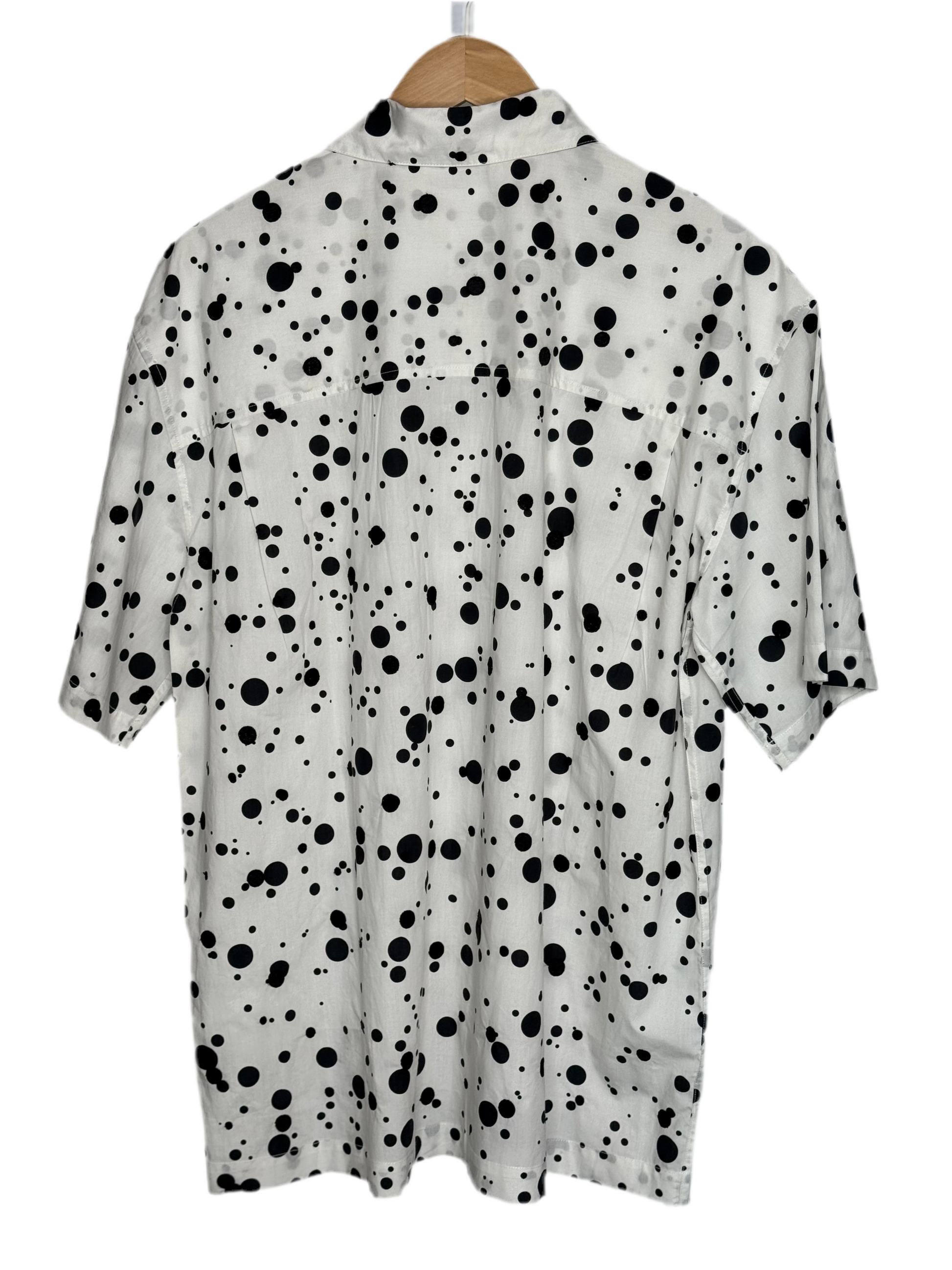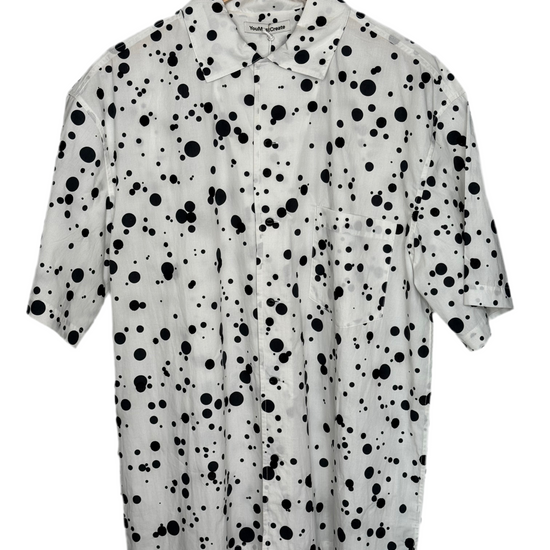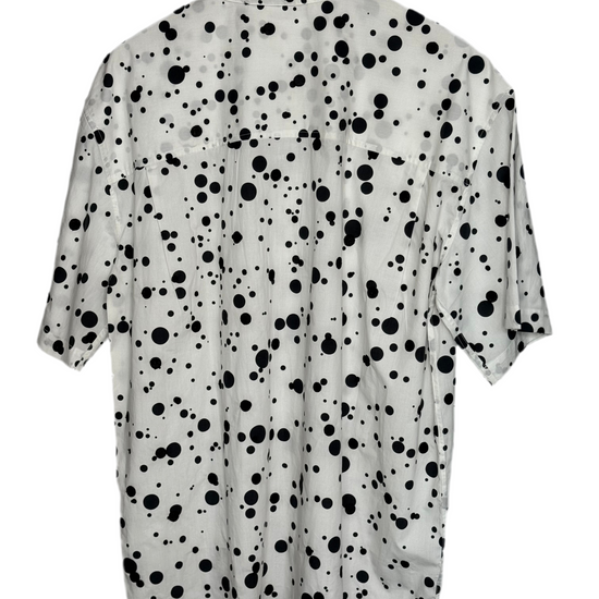Sidri White Short Sleeve Shirt Black Embroidery Dots