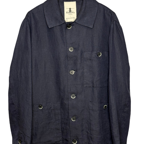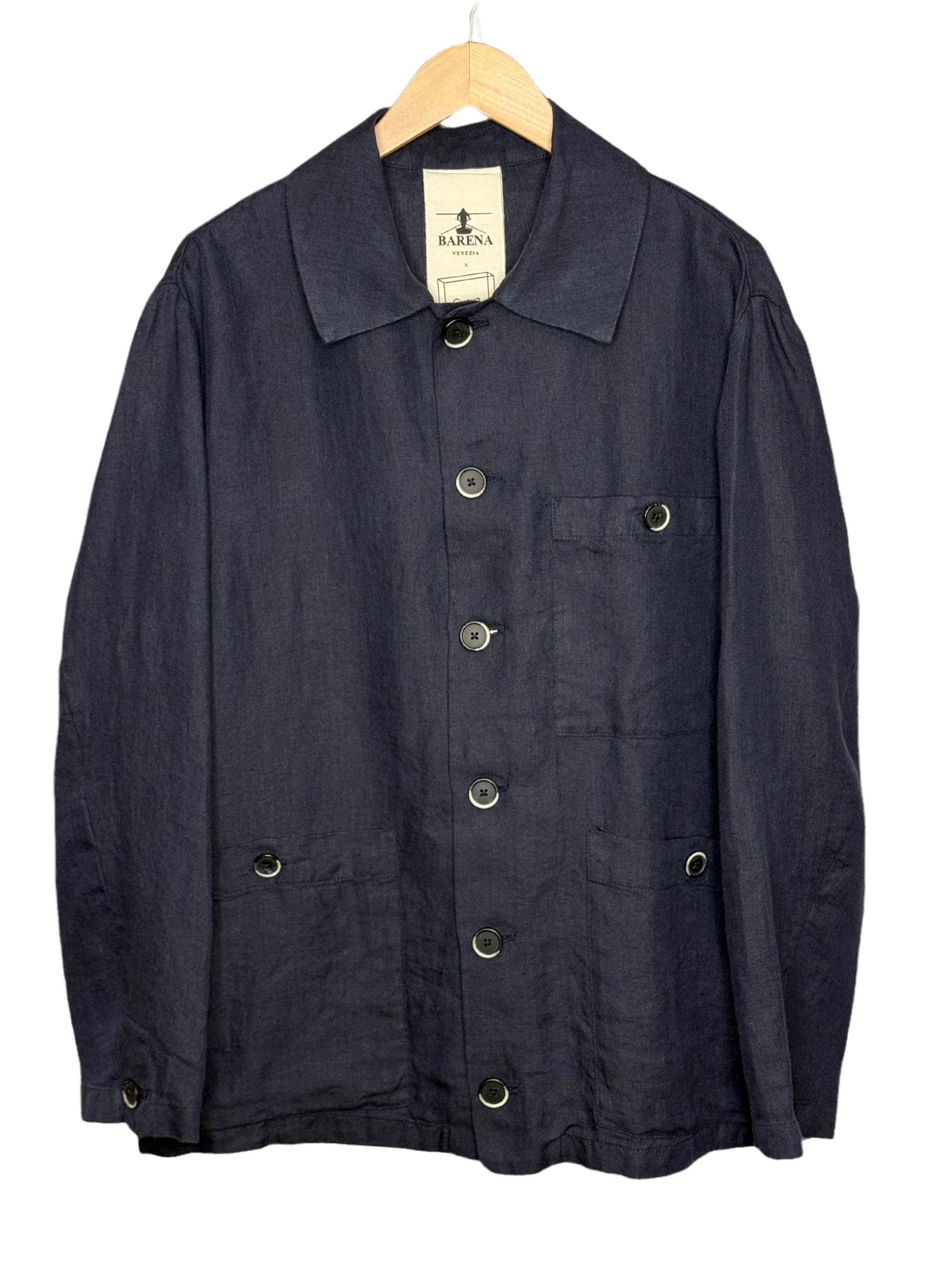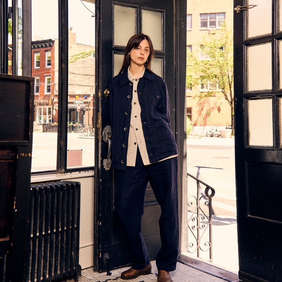 Stae Overshirt Linen Herringbone Navy