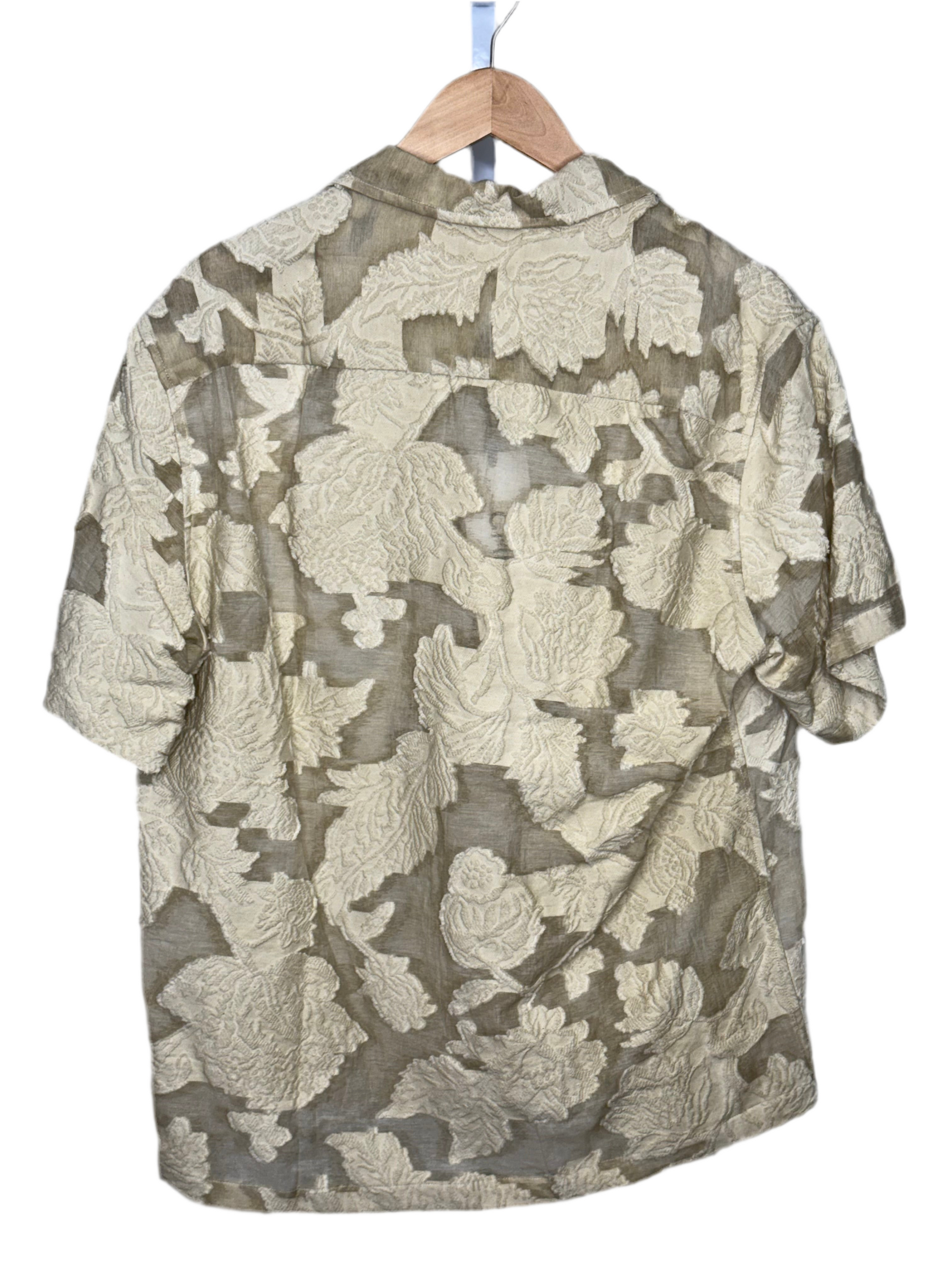 Ture Short Sleeve Camp Shirt Beige Floral Burnout