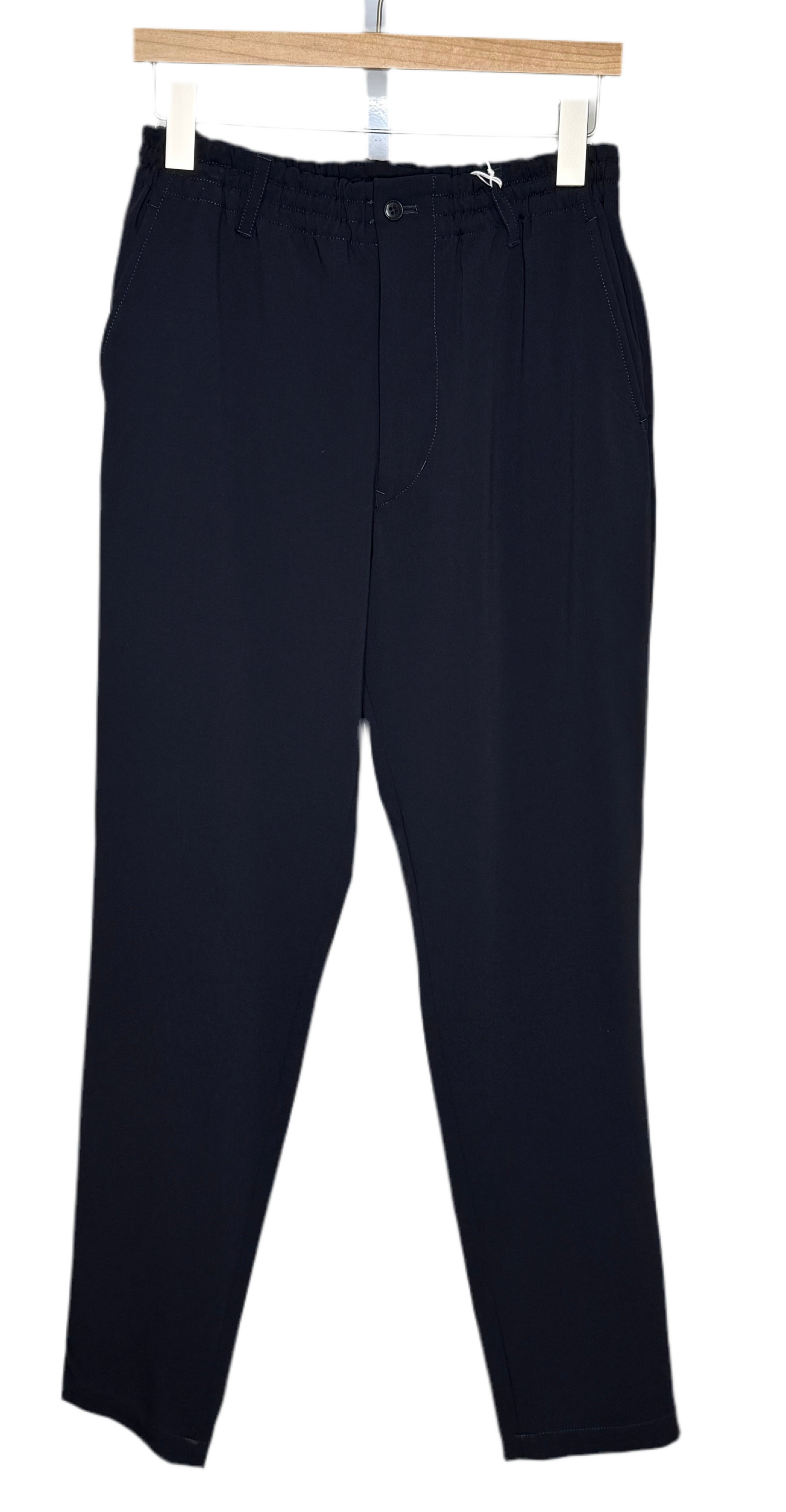 Twill Tapered Loose Fit Pants Navy Polyester Rayon
