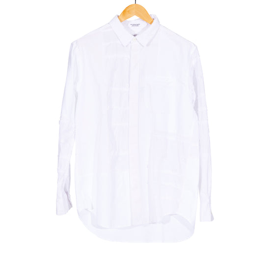 Combo Short Collar White Patchwork Button Down Shirt Cotton