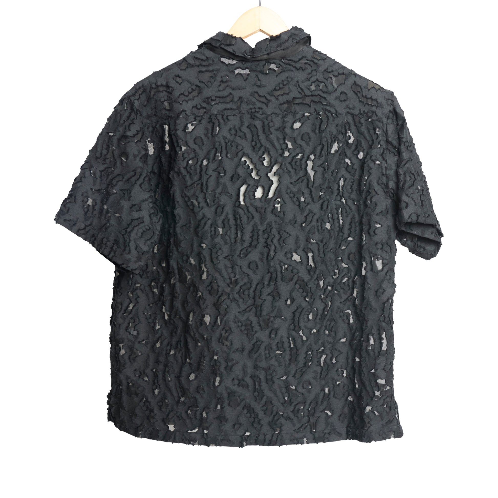 Wide Camp Collar Short Shirt Black Fil Coupe